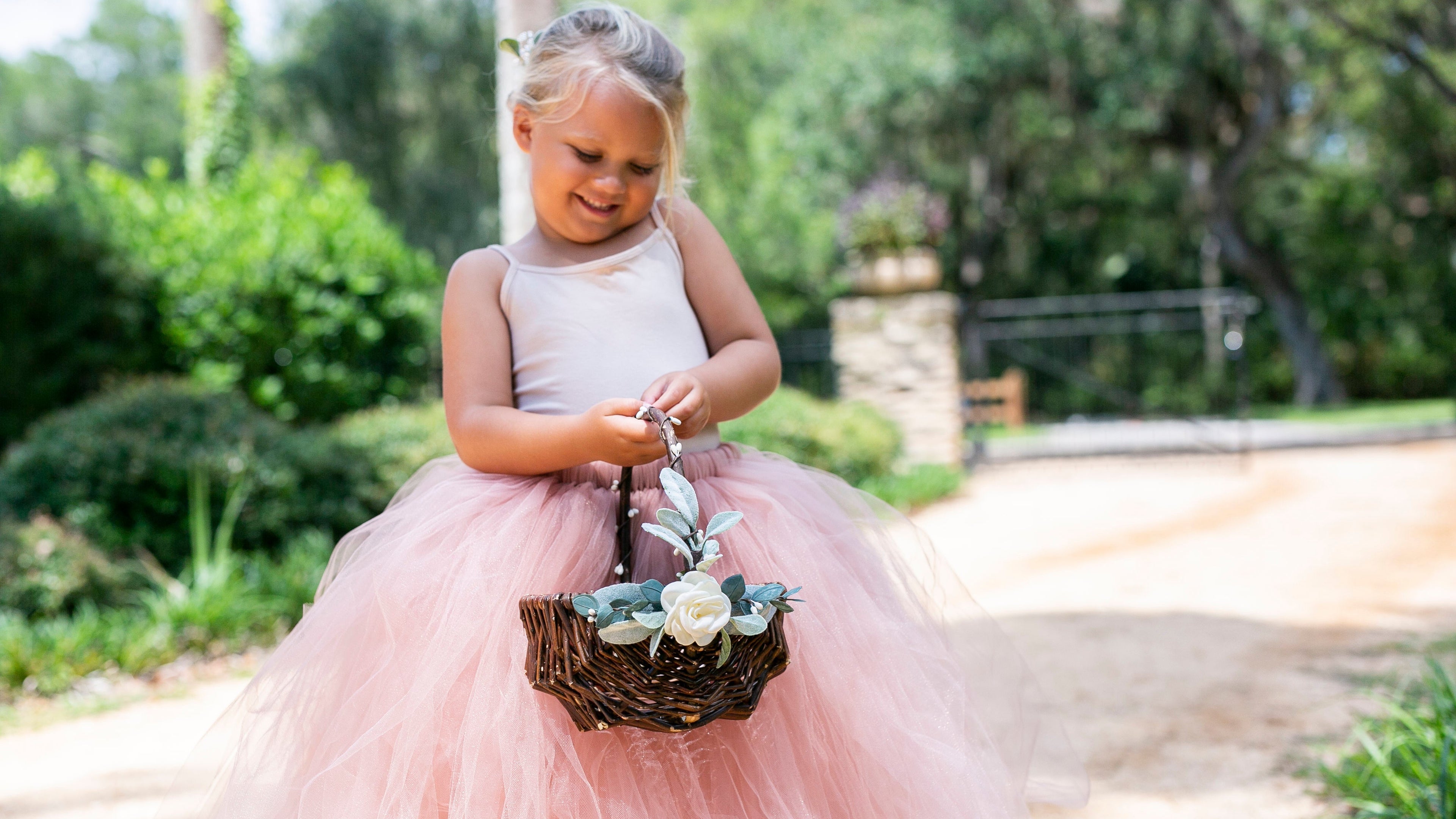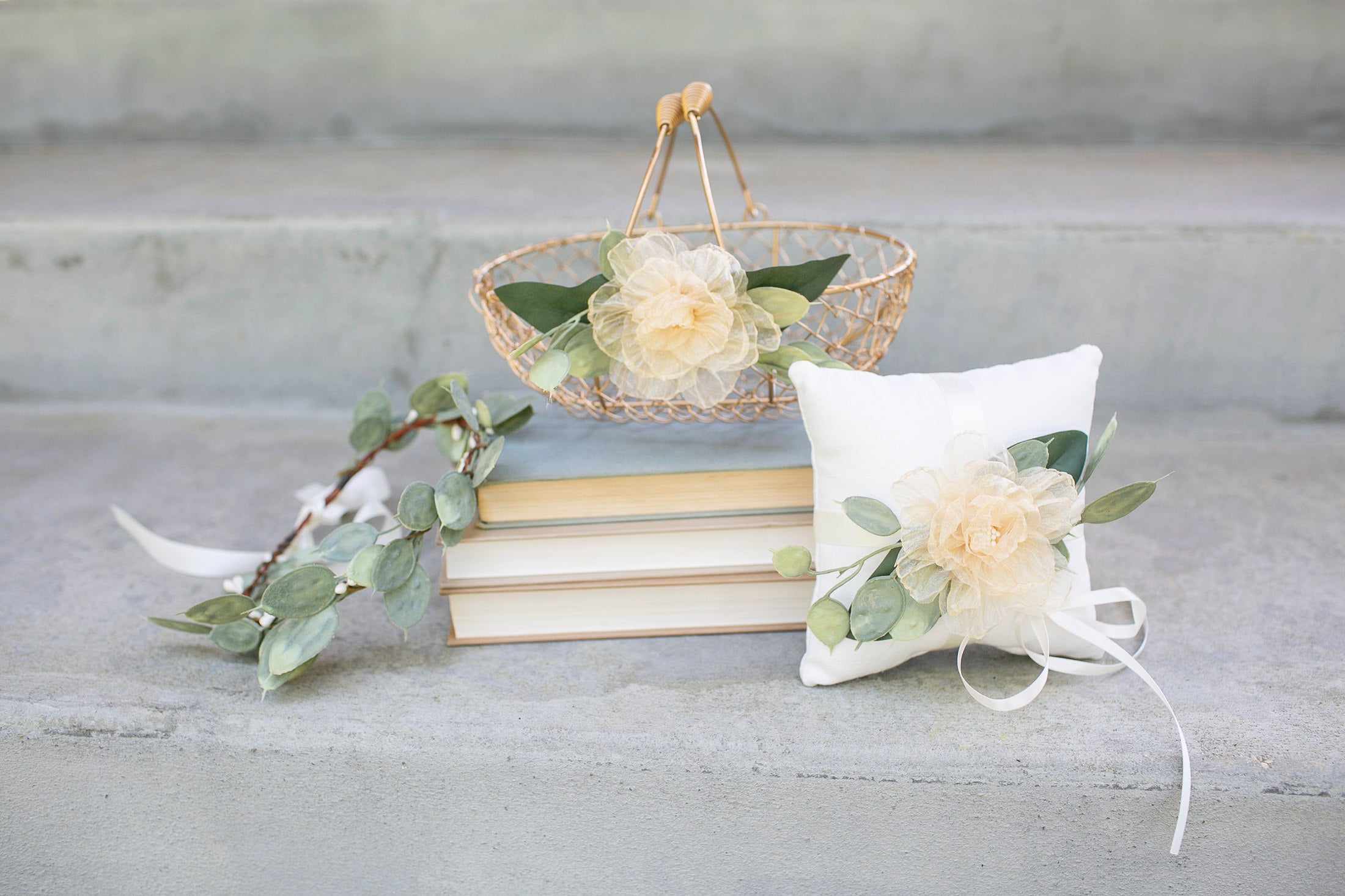 Amber Flower Girl Wire Basket and Ring Bearer Pillow